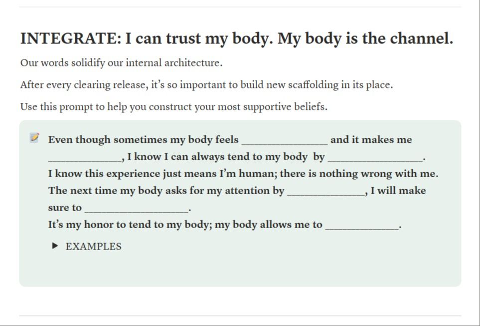 Lesson 2: Your body is the channel of your voice. There's a way through every block. Surface where story and soma are experiencing friction. Practice scanning, releasing, and reintegrating trust in the body that channels everything you create.